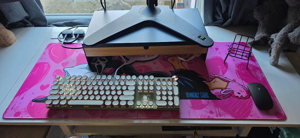 - What’s in the box: Premium deskpad, Orange Scented Air Freshener, Technically Stable Stickers and a cute tiny little duck🦆.